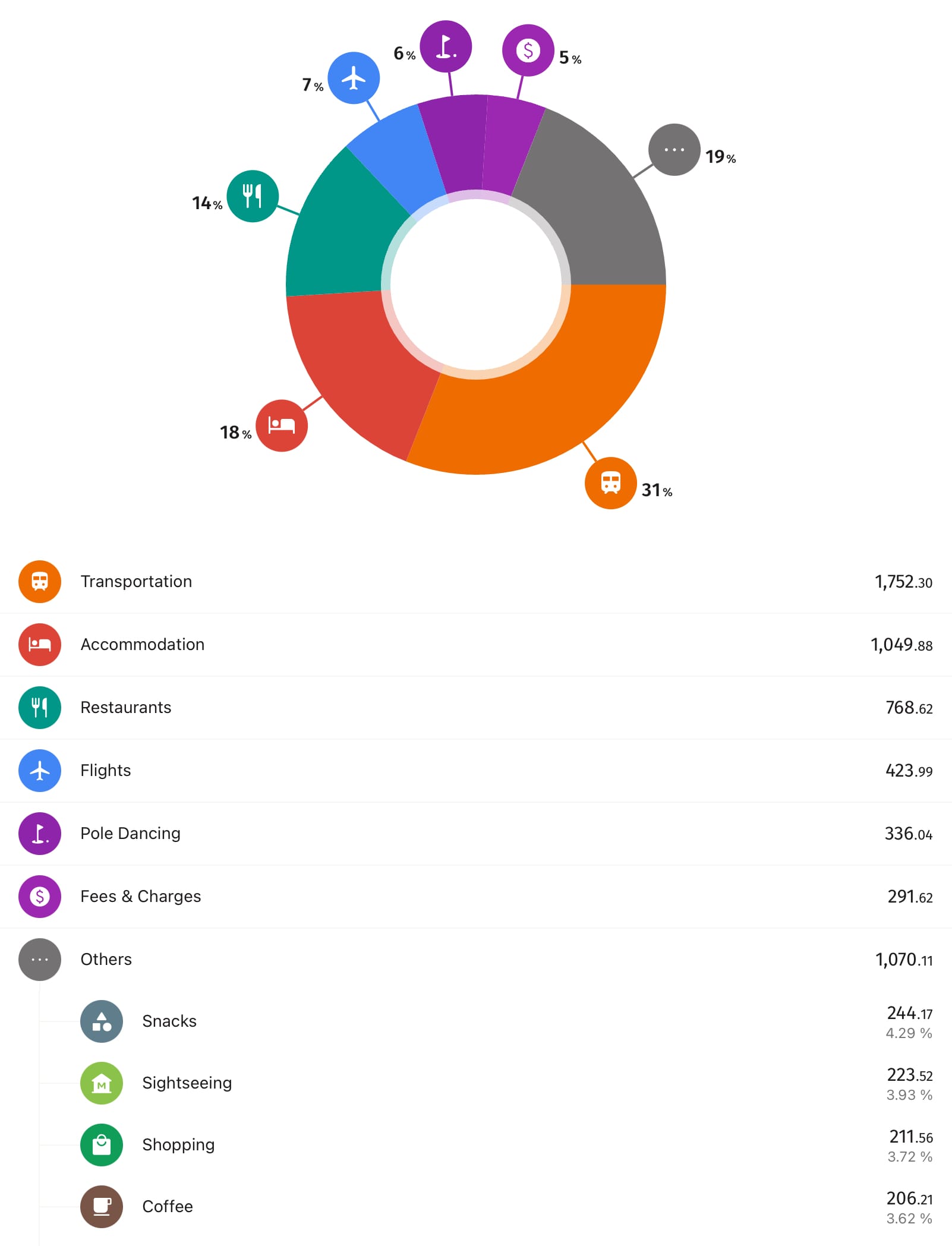 The ‘transportation’ includes the car hire for days spent outside of Spain.